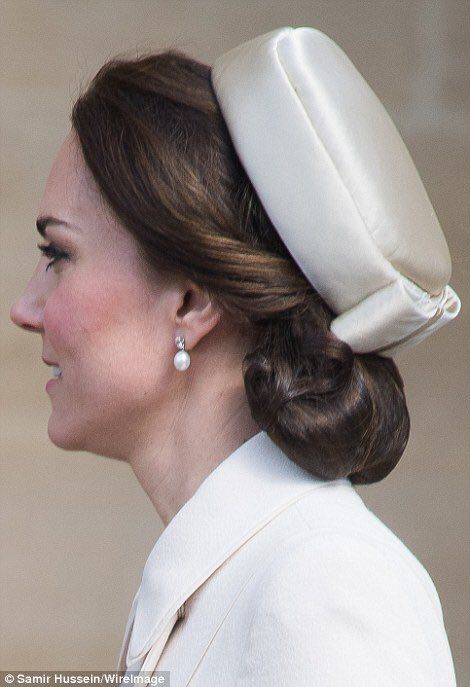 Romantic braided updos or low hair updos are Kate’s go to hairstyle when it comes to looking extra glamorous. She likes to keep her hair off her face in tidy buns or medium tight braids. As you may have guessed, our favorite looks is the one with pearl details. You can also try this look by keeping your swirly hairstyle in place with elegant pearl-accented bobby pins. Complete the look with a delicate bracelet for additional sophistication. You’ll look very chic!